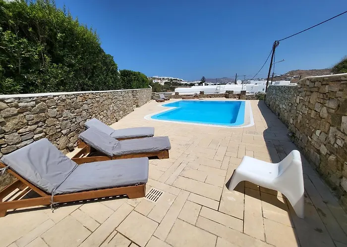 Il centro di Ornos dista 1 km dalla villa e il Museo Marittimo dell'Egeo è situato a 10 minuti in macchina. Ornos si trova a 500 metri da questa villa, mentre la chiesa di Panagia Paraportiani è a 2,1 km.